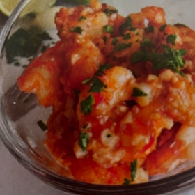 Place 2 Tbsp butter in a medium saucepan over medium-high heat. Add the shrimp and cook for 2 to 3 minutes until opaque; set aside. Add garlic to pan and cook until fragrant, about 1 minute. Pour chicken stock, hot sauce and lemon juice into the pan. Cook, season with salt and pepper to taste and stir 1 to 2 minutes. Stir in the remaining butter until well blended. Stir shrimp into sauce; warm through. Makes 2 servings.